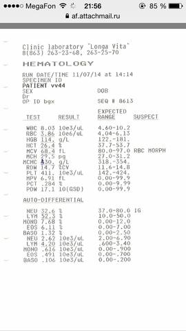 Вот  ОАК, кровь вирусная и низкий гемоглобин.