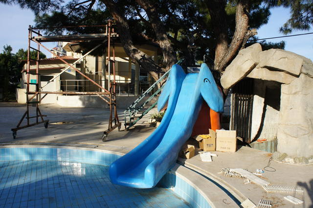 А потом в этот страшный бассейн с горками налили воду и там стало плавать три утки..