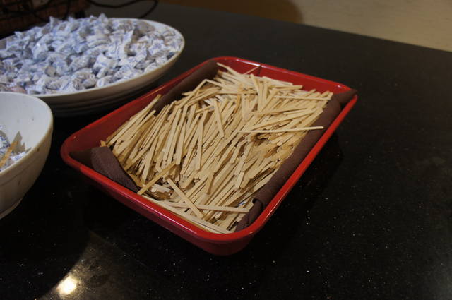 А палочки - это вместо чайных ложек, их там в принципе нет, как и чашек, - только бумажные стаканчики...